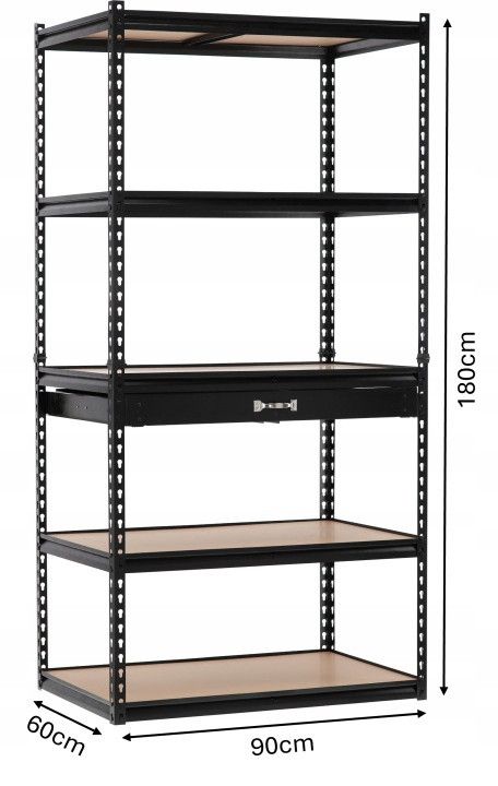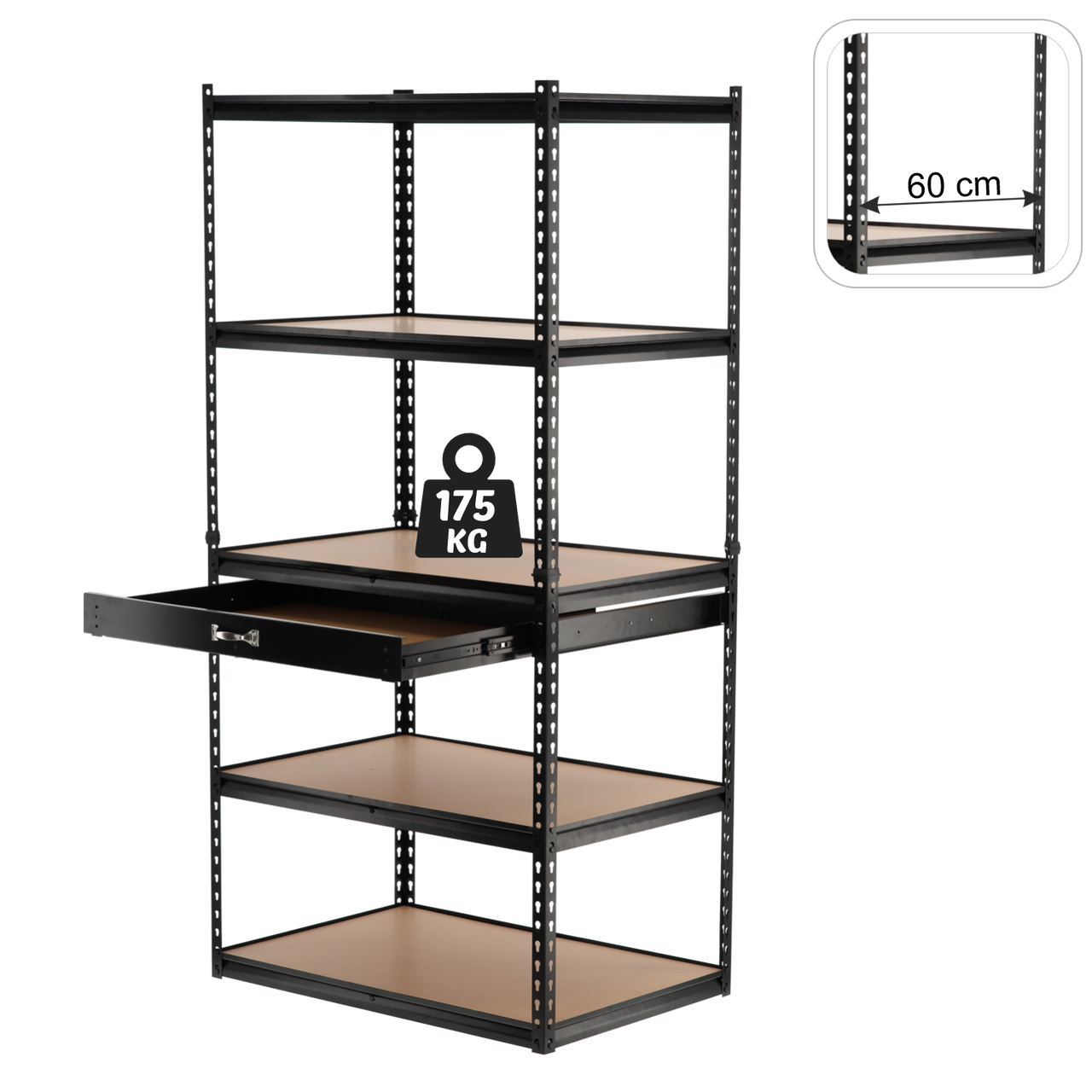 Стелаж металевий з шухлядою (180 × 90 × 60 см) 5 регульованих полиць, навантаження на полицю - 175 кг, Чорний (GWI2127)