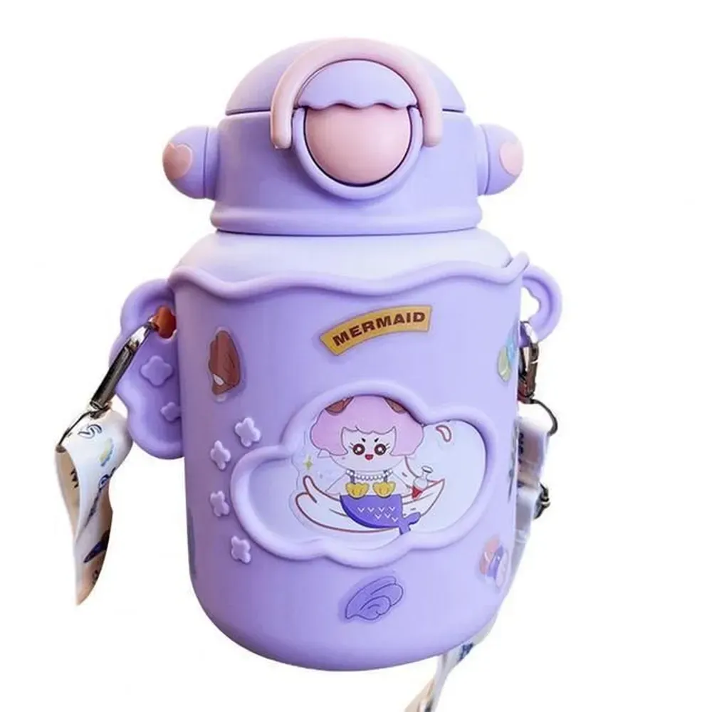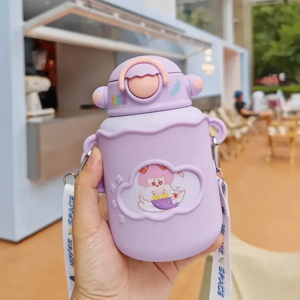 Термос детский с поильником и ремешком 300 мл термокружка из нержавеющей стали до 12 часов Фиолетовый (B2001V)
