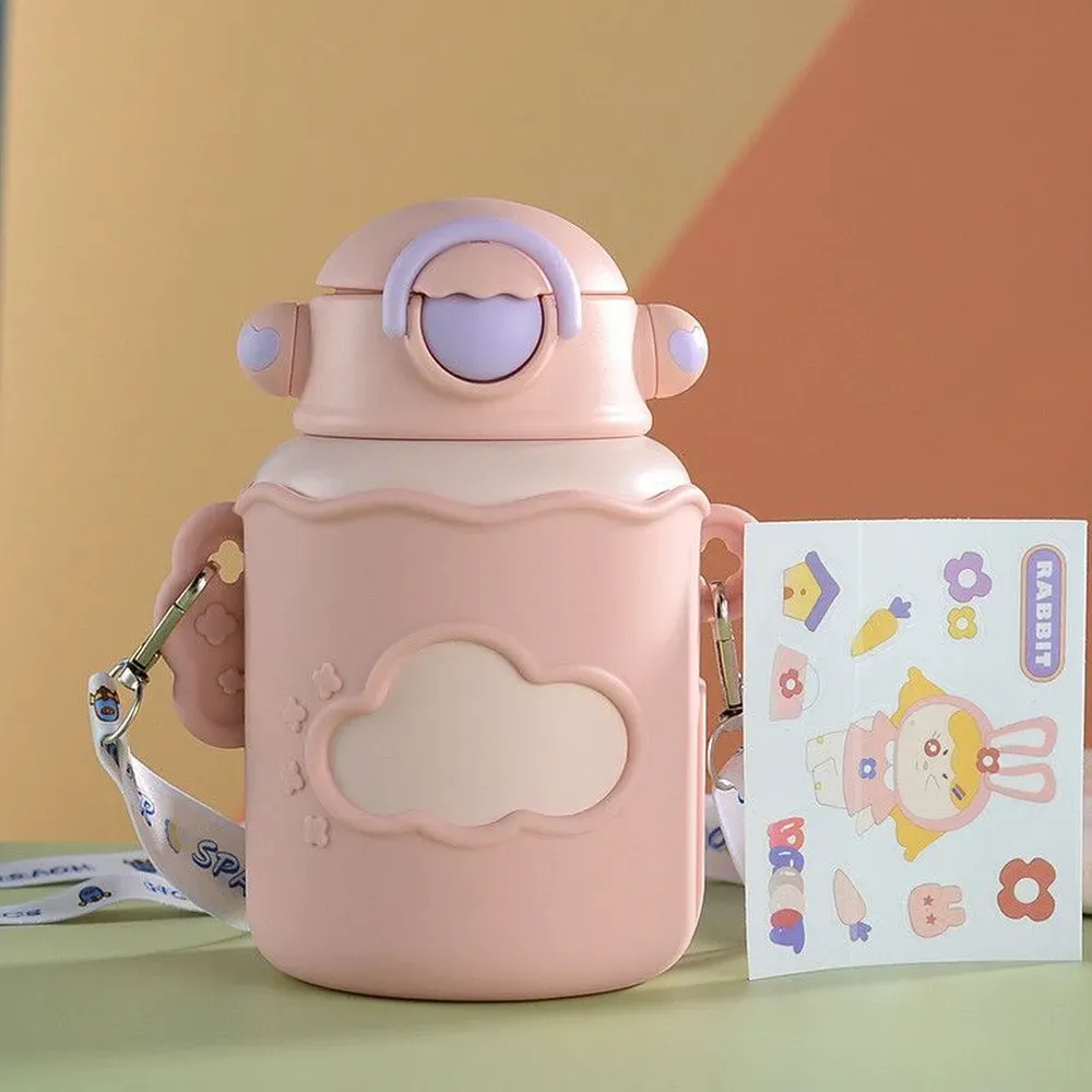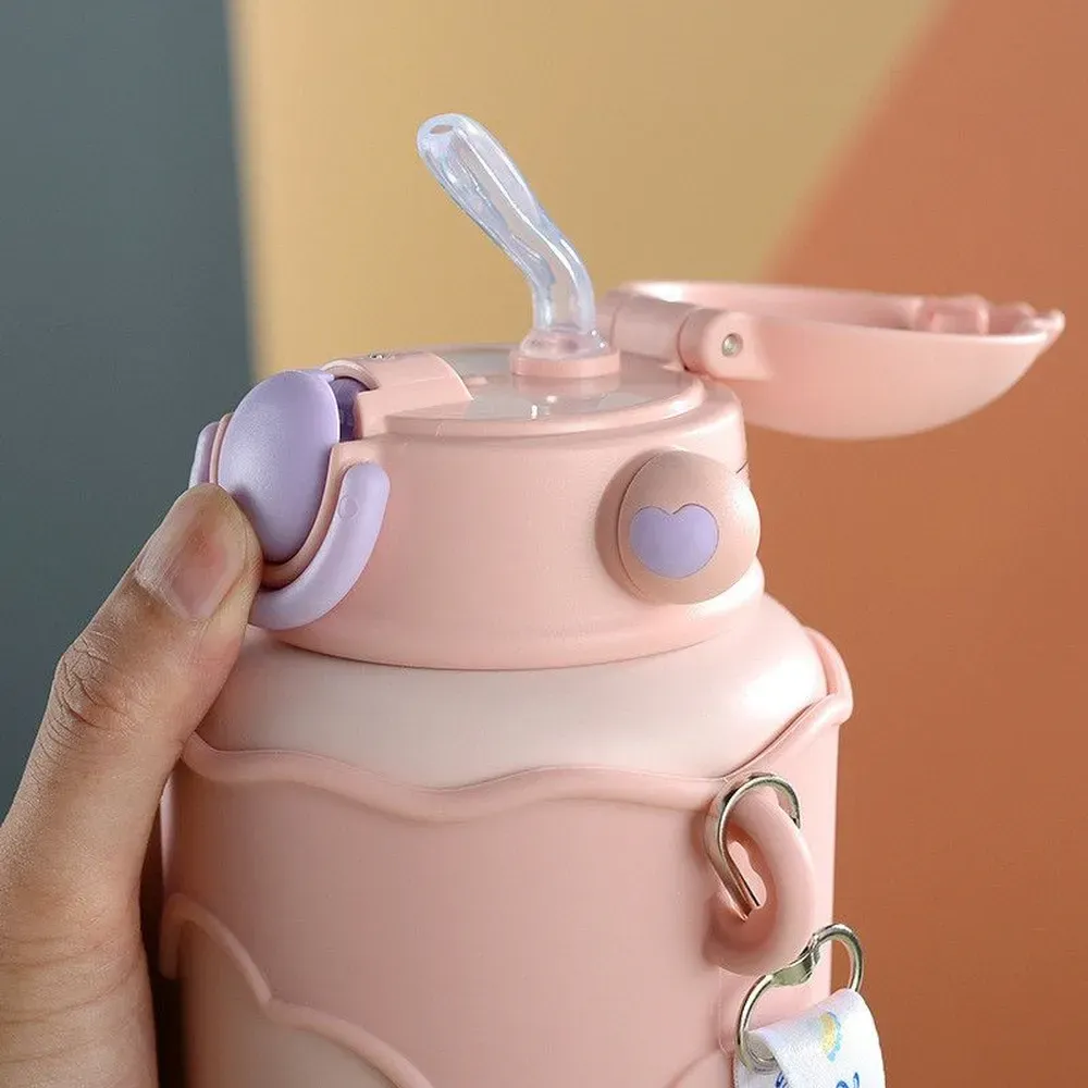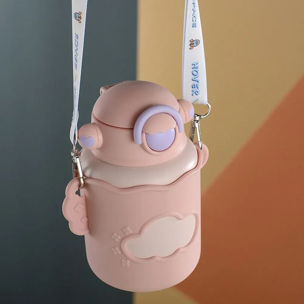 Термос детский с поильником и ремешком 300 мл термокружка из нержавеющей стали до 12 часов.
