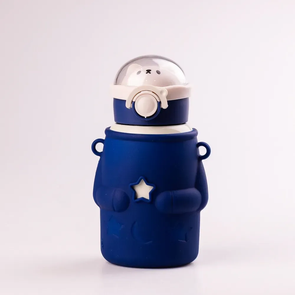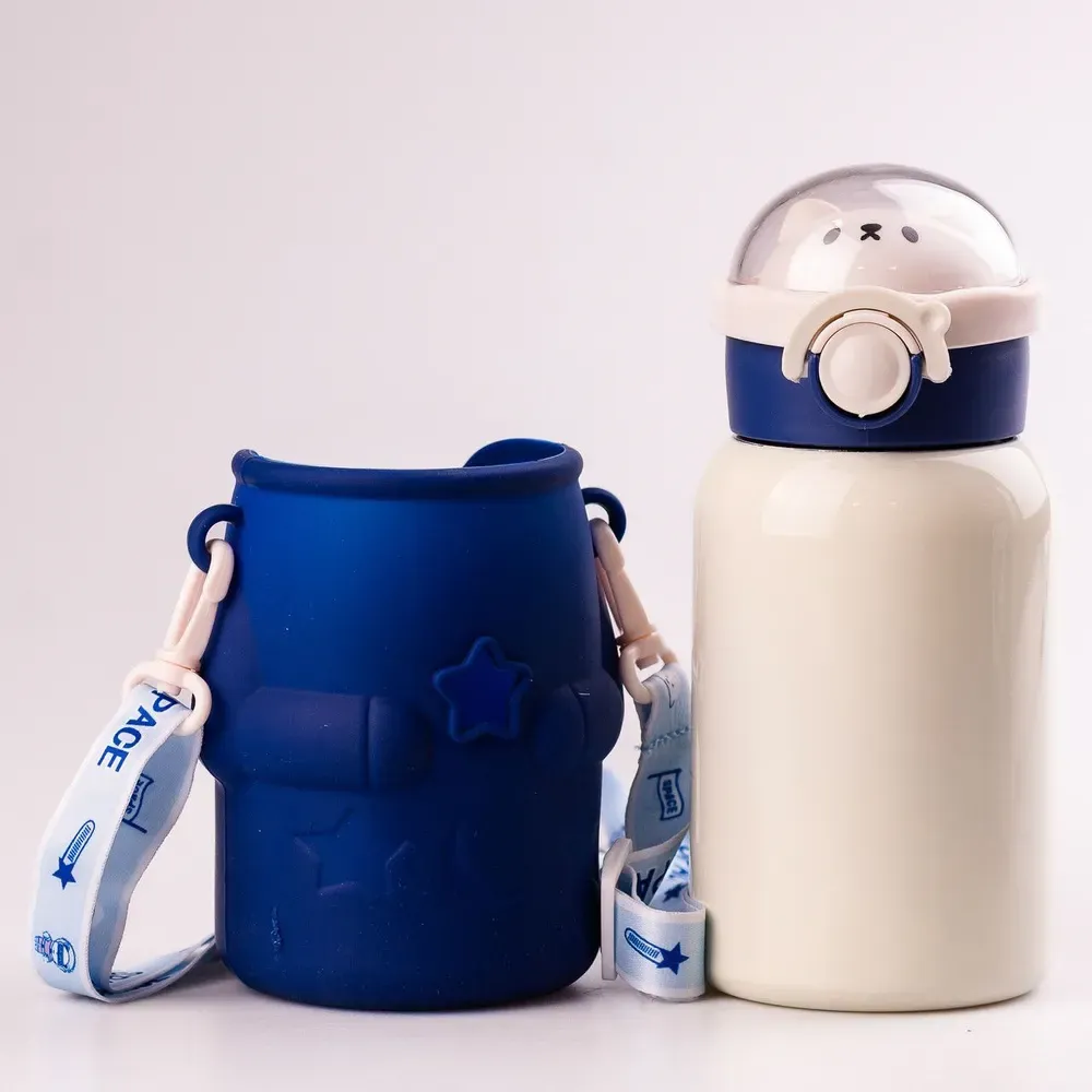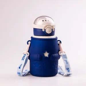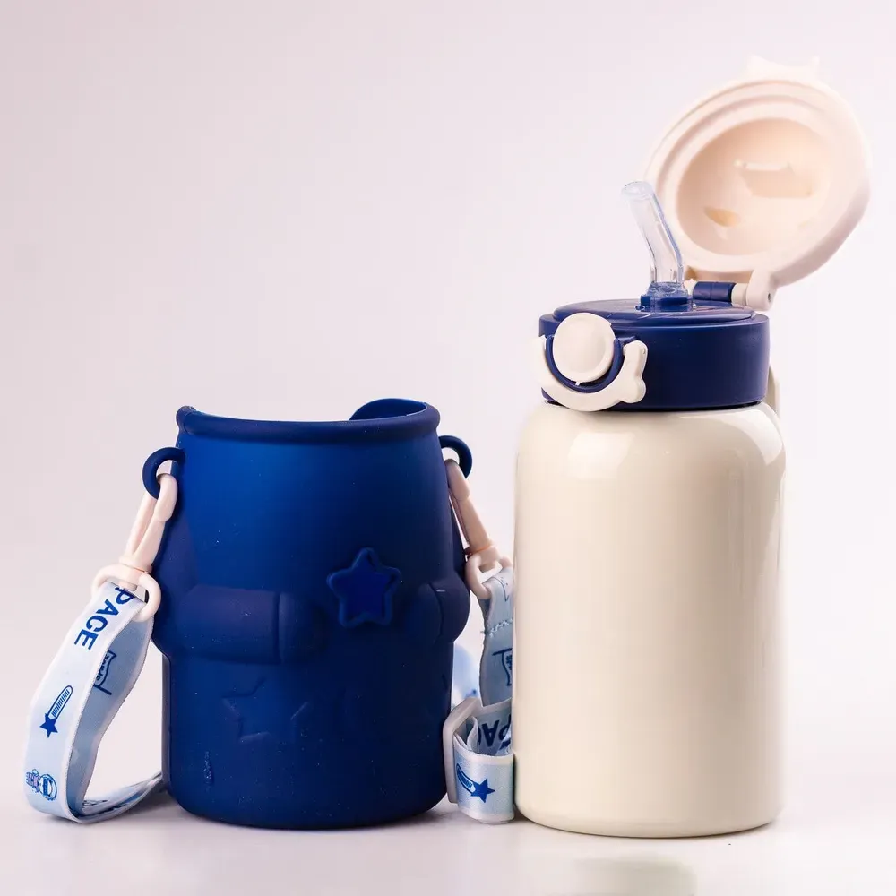 Термос детский с трубочкой и ремешком 500 мл из нержавеющей стали (HPGM2101BL)