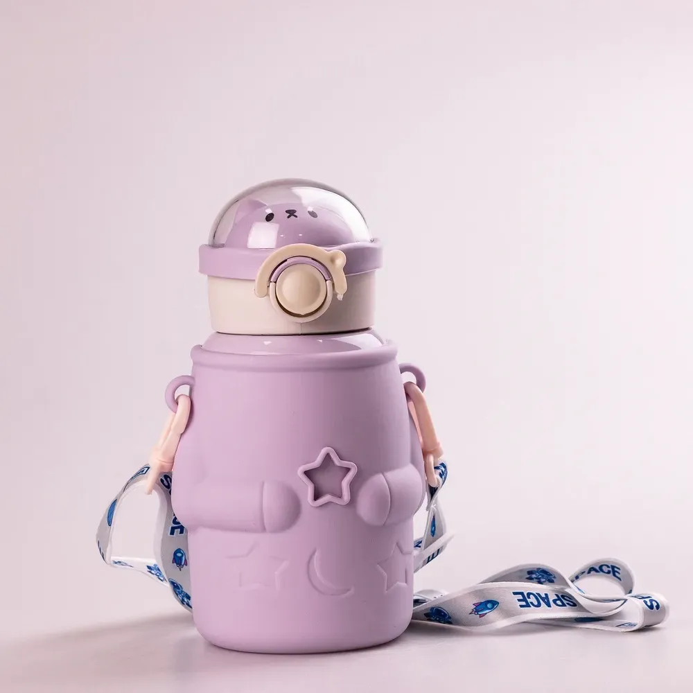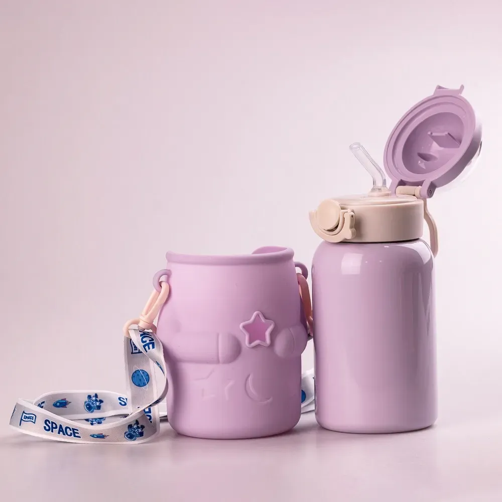 Термос детский с трубочкой и ремешком 500 мл из нержавеющей стали Фиолетовый (HPGM2101V)