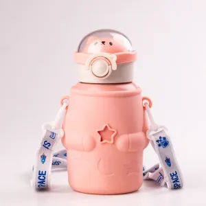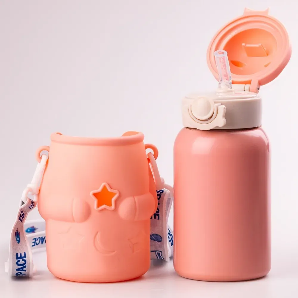 Термос детский с трубочкой и ремешком 500 мл из нержавеющей стали (HPGM2101PE)