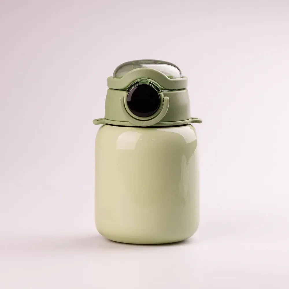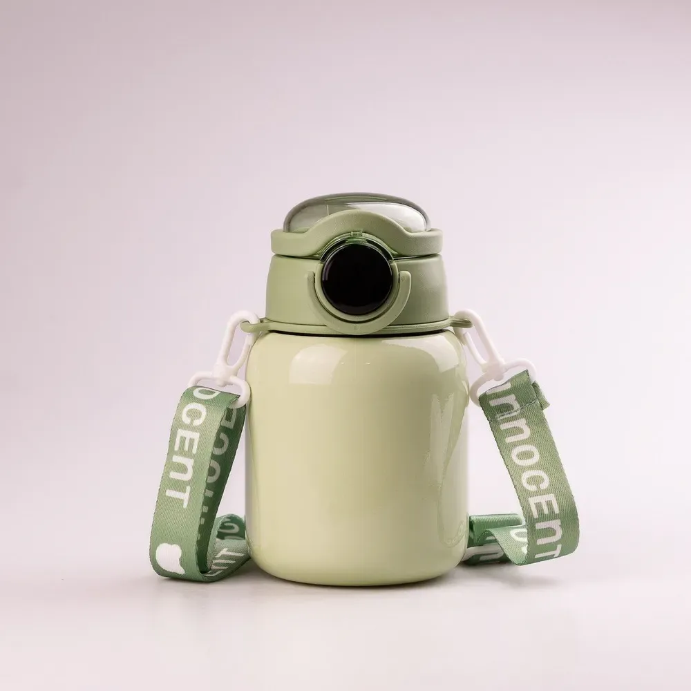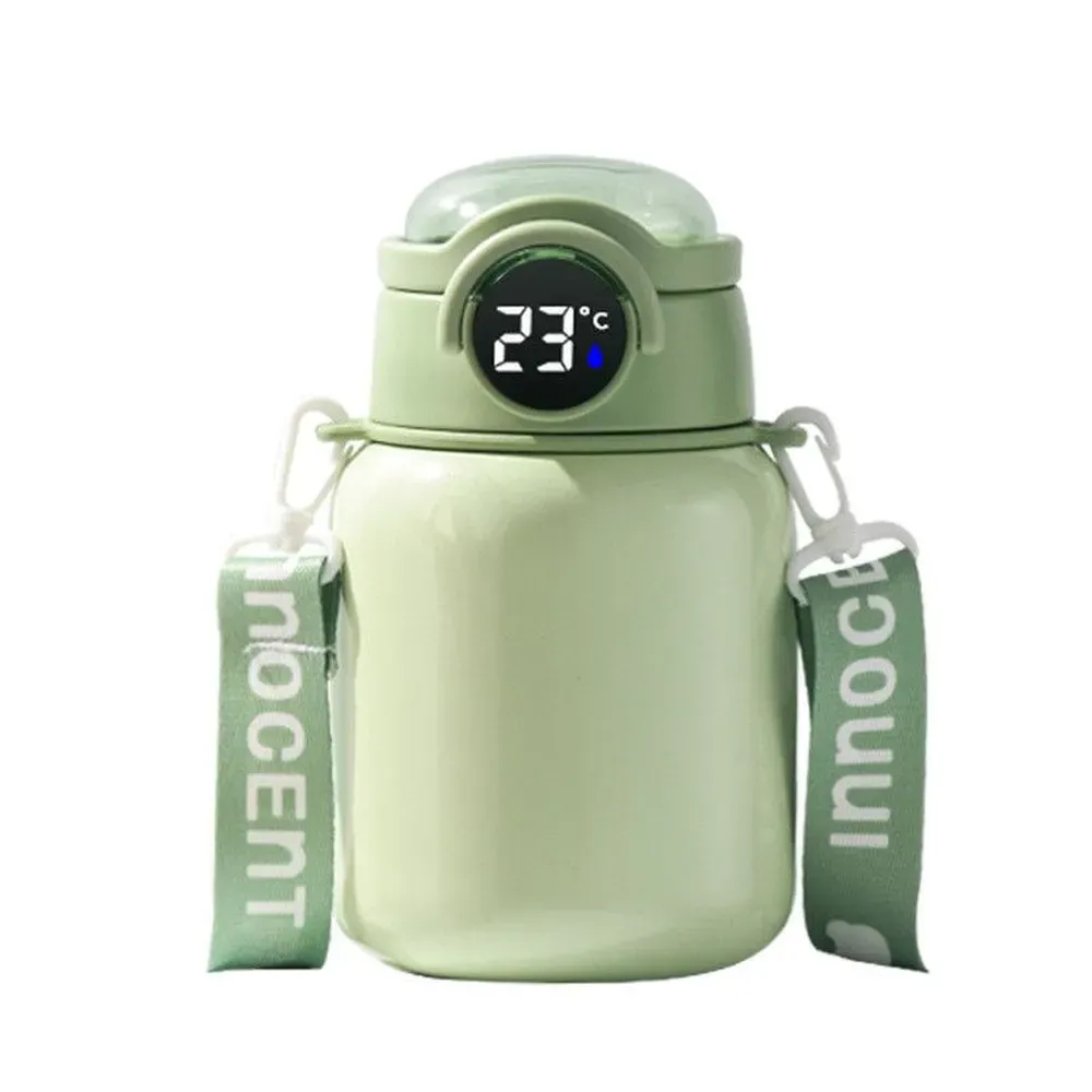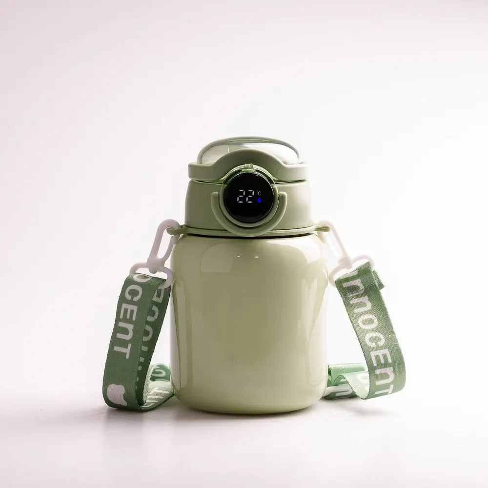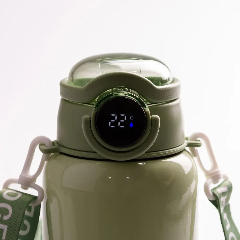 Термос с трубочкой 650 мл из нержавеющей стали с датчиком температуры ремешком до 12 часов (HPGM8816GR)