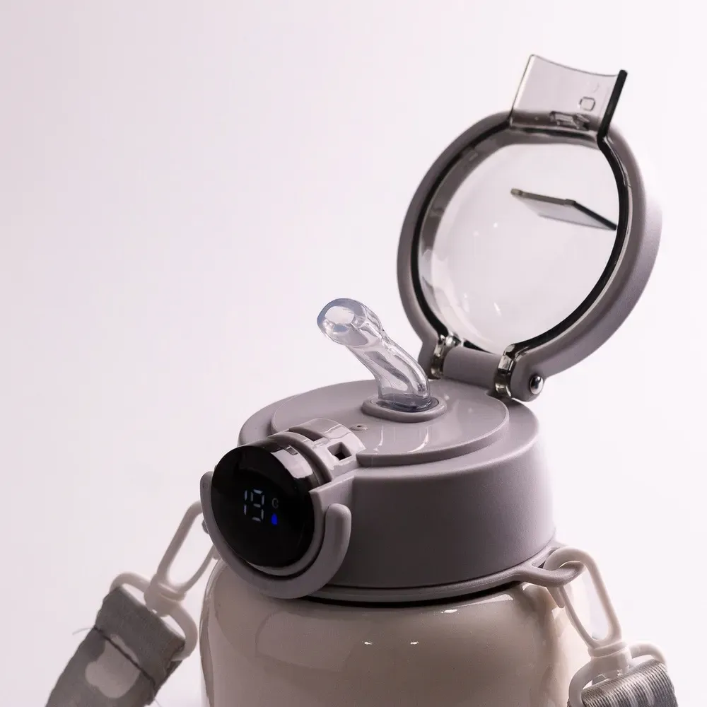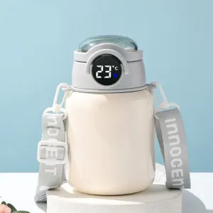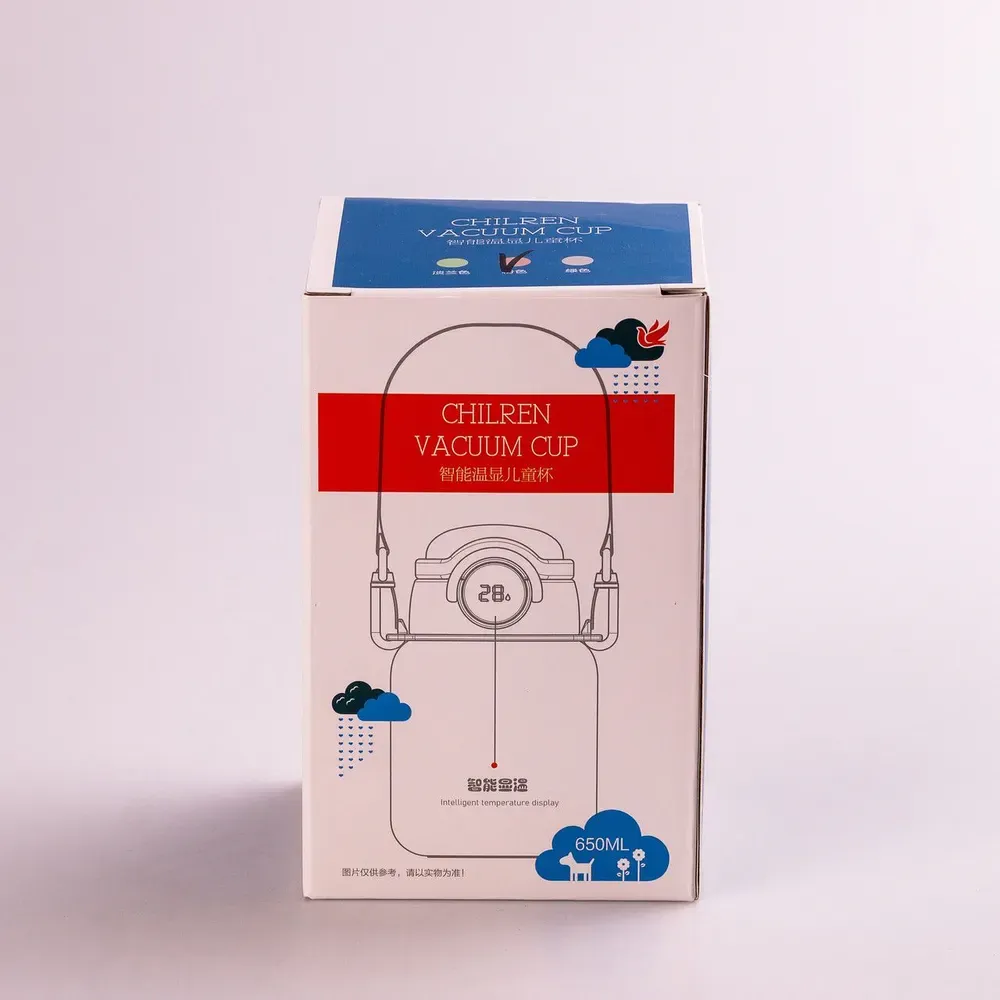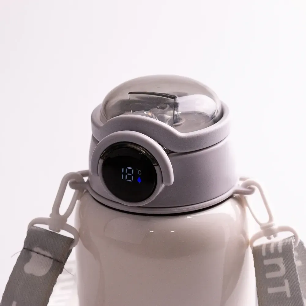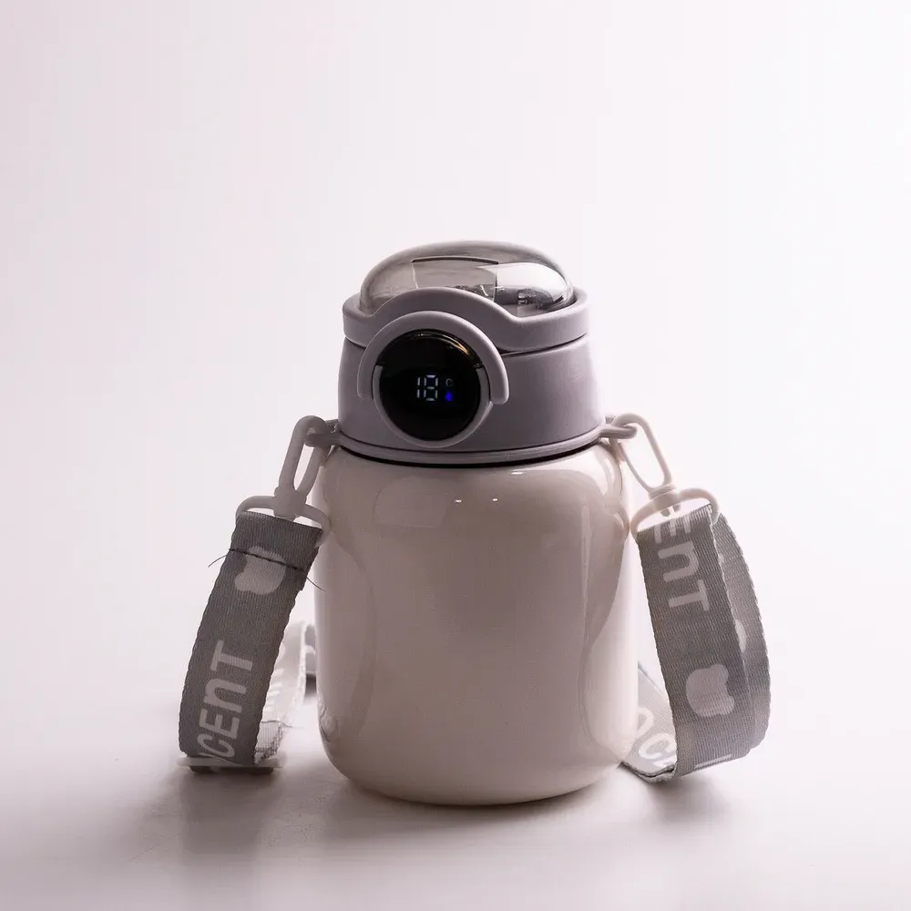 Термос с трубочкой 650 мл из нержавеющей стали с датчиком температуры ремешком до 12 часов (HPGM8816BE)