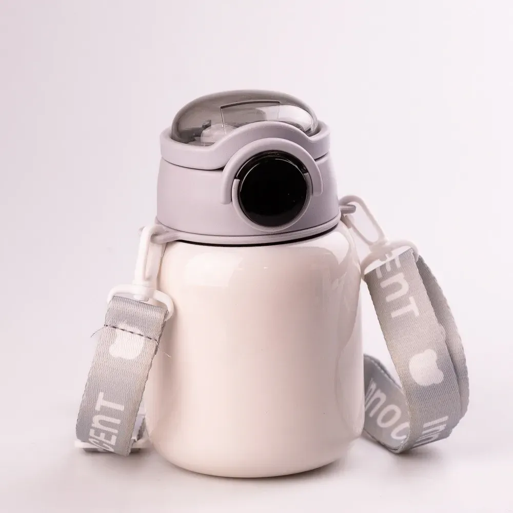 К термосу прикреплен удобный ремешок, который обеспечивает легкость переноски и придает функциональность. Современный и стильный дизайн данного термоса делает его не только функциональным, но и эстетическим аксессуаром. >