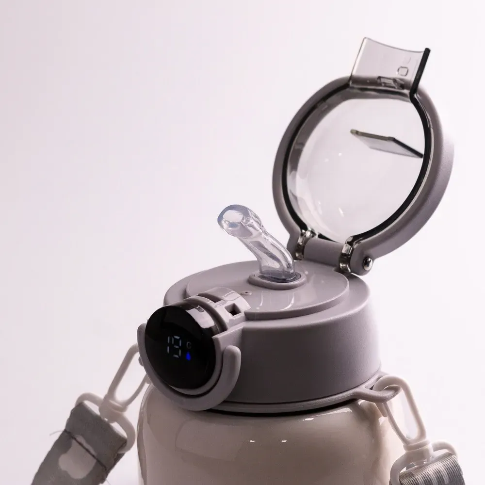 Термос с трубочкой из нержавеющей стали 650 мл с датчиком температуры ремешком до 12 часов. (3_2128961119)