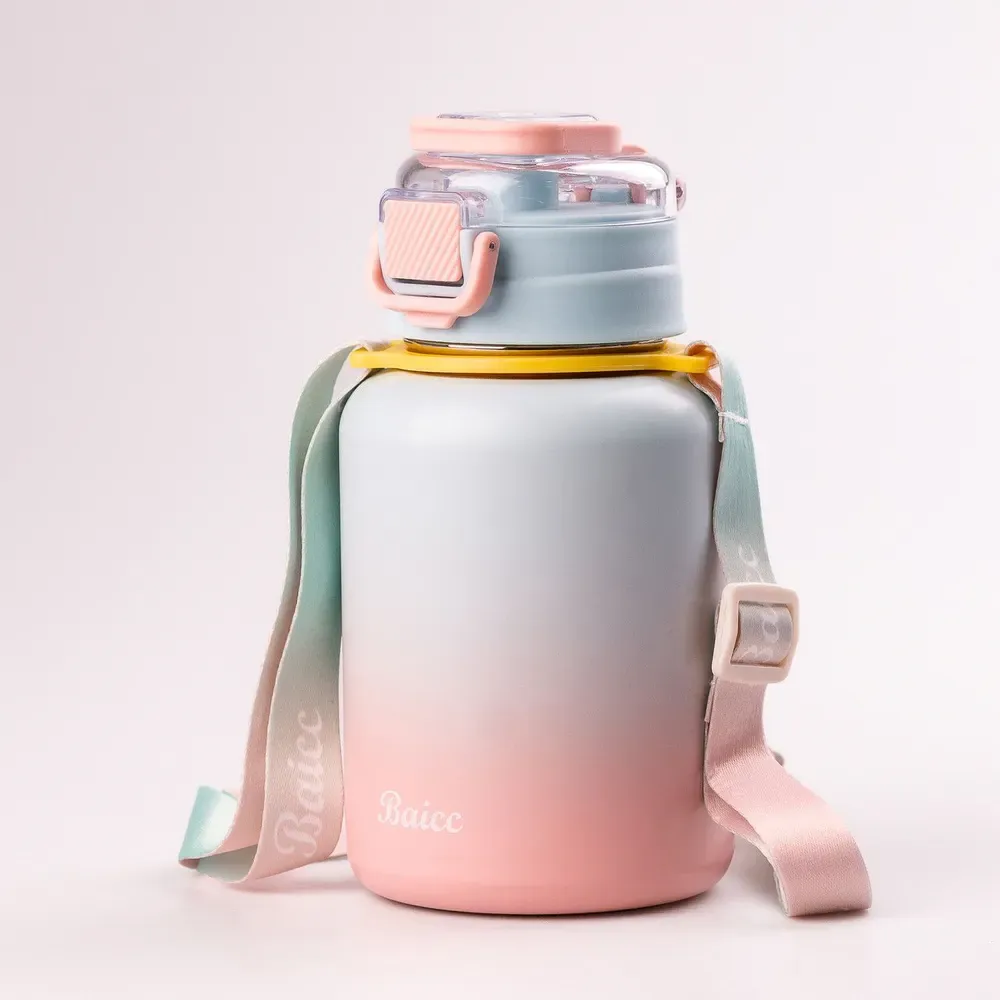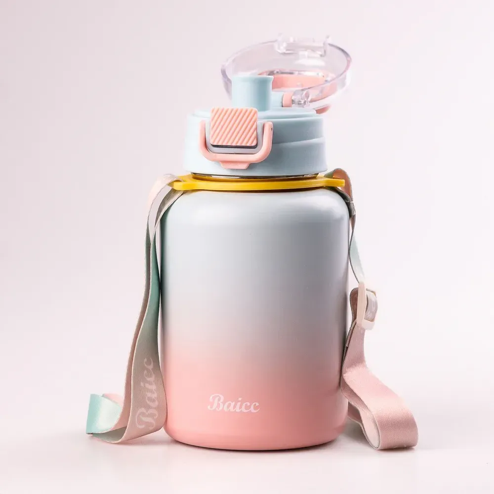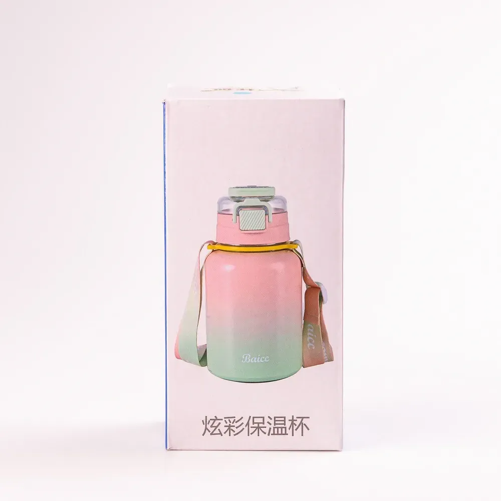 Термос с трубочкой и ремешком 600 мл из нержавеющей стали до 12 часов.