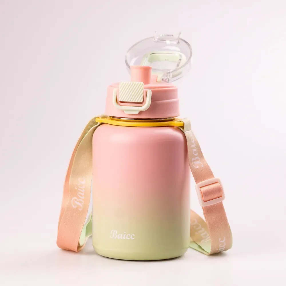 Термос с трубочкой и ремешком 600 мл из нержавеющей стали до 12 часов.