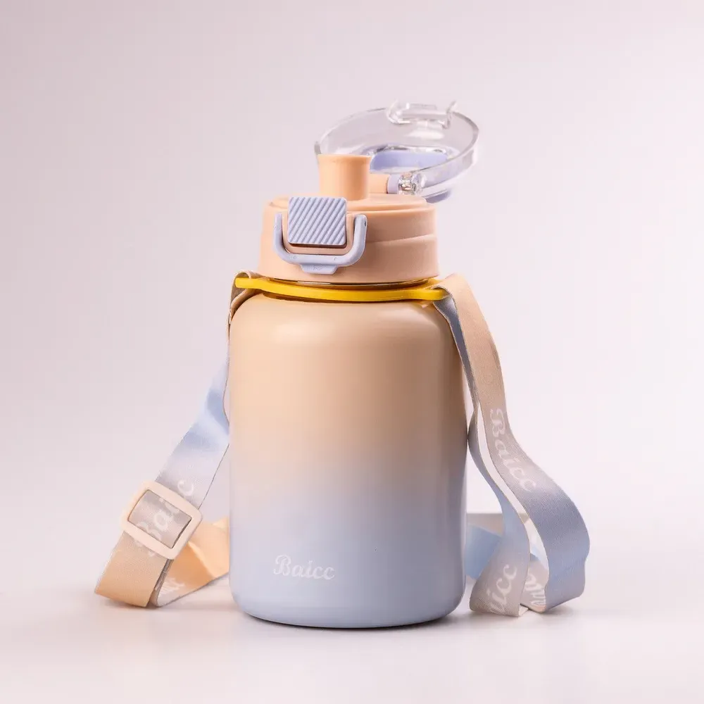 Термос с трубочкой и ремешком 600 мл из нержавеющей стали до 12 часов.