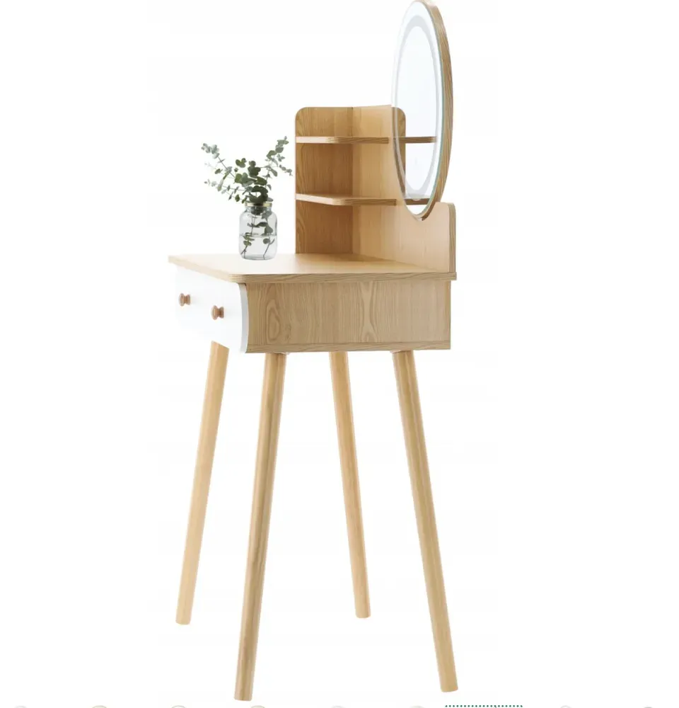 Простой скандинавский дизайн туалетного столика отличается простотой и минимализмом, характерными для скандинавского стиля. Яркие цвета, натуральные материалы и эргономичные формы создают гармоничное целое. . Оно позволяет контролировать свой внешний вид со всех сторон, облегчая ежедневный уход за собой и подготовку ко дню. Дополнительная светодиодная подсветка идеально подходит для нанесения макияжа. , а также 2 полки.
