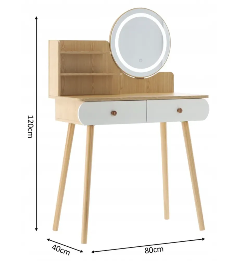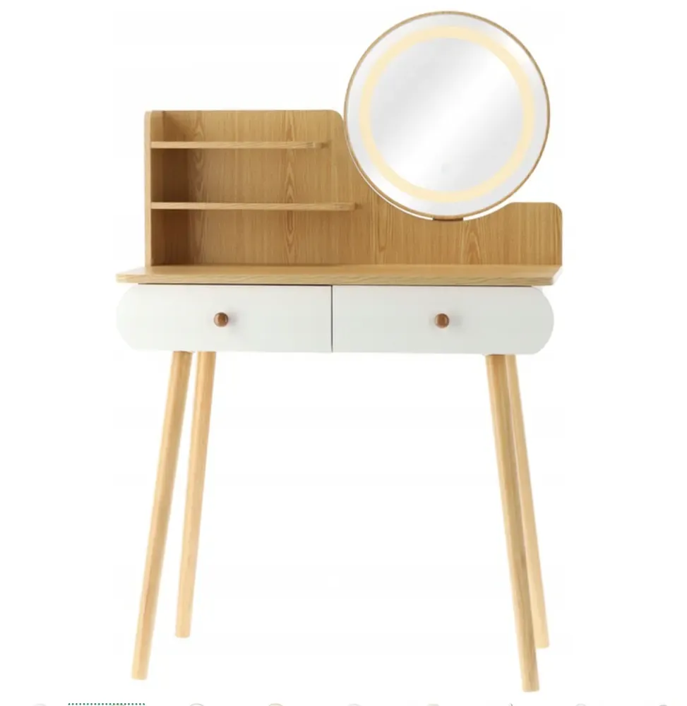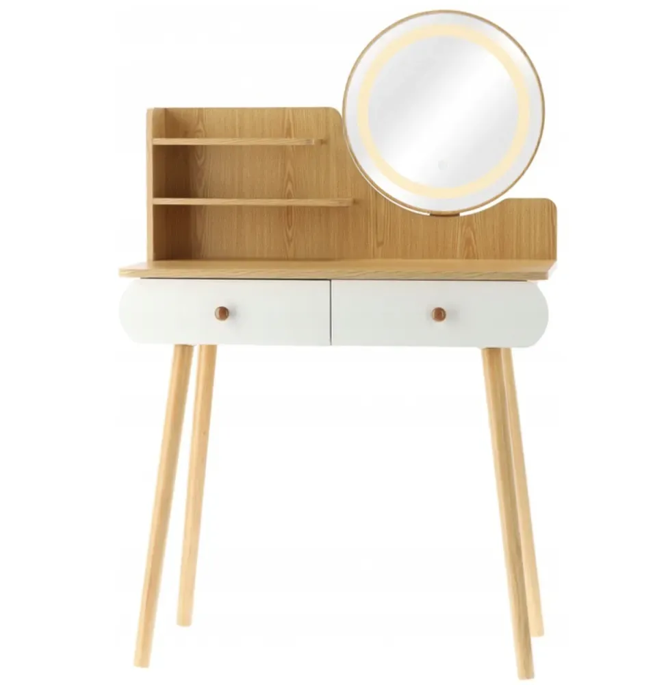БЕЛЫЙ/ДЕРЕВЯННЫЙ ТУАЛЕТНЫЙ СТОЛИК СО СВЕТОДИОДНЫМ ЗЕРКАЛОМ