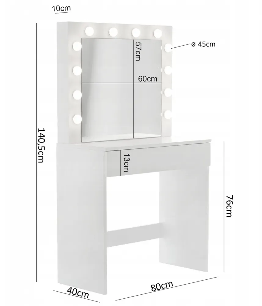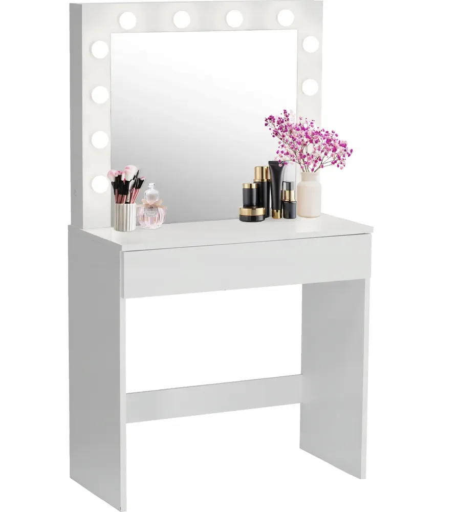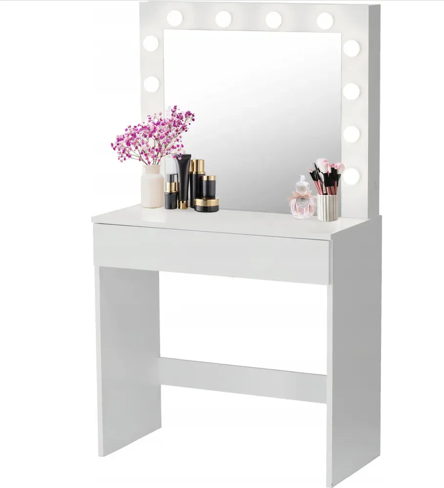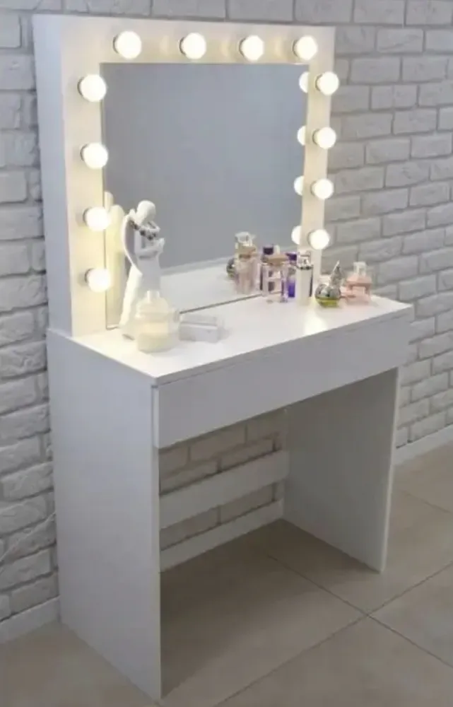 < БОЛЬШАЯ МЕСТКА ШУХЛЯДАТуалетный столик оснащен вместительным ящиком с отделением для хранения большого количества косметики, украшений и аксессуаров для макияжа. Это позволит вам быть организованной и иметь все под рукой. равномерное освещение. Это идеально подходит для точного макияжа и ухода за кожей даже при слабом освещении. Элегантный дизайн изготовлен из высококачественных материалов современный, элегантный дизайн, идеально сочетающийся с любым интерьером.