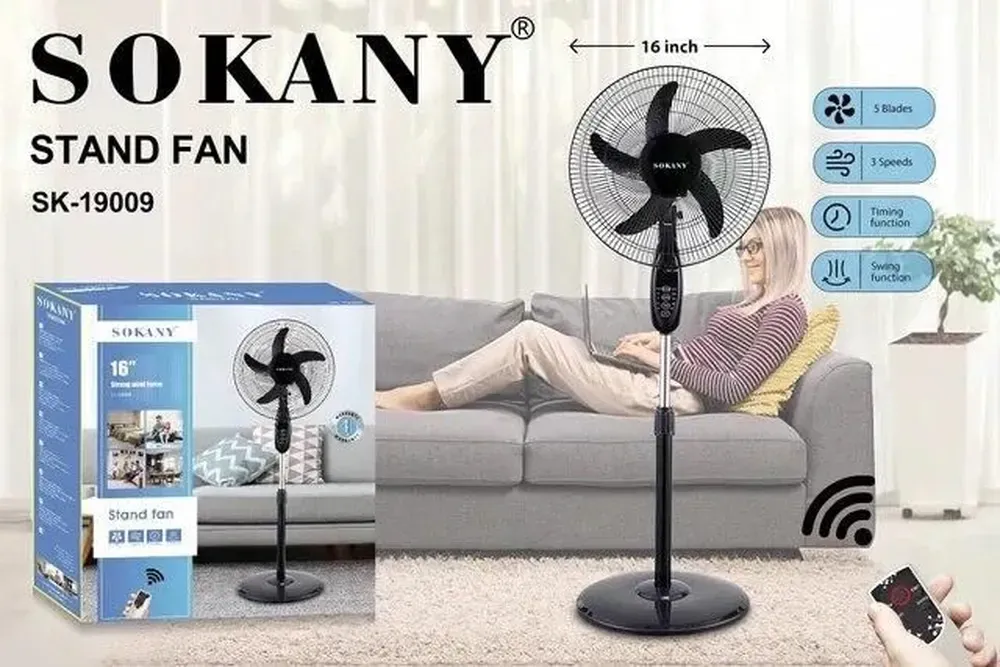 Вентилятор электрический напольный 3 скорости 5 лопастей Sokany (SK19009)