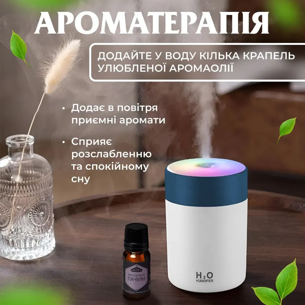 Увлажнитель воздуха для дома портативный USB 300 мл ароматический диффузор с подсветкой Белый